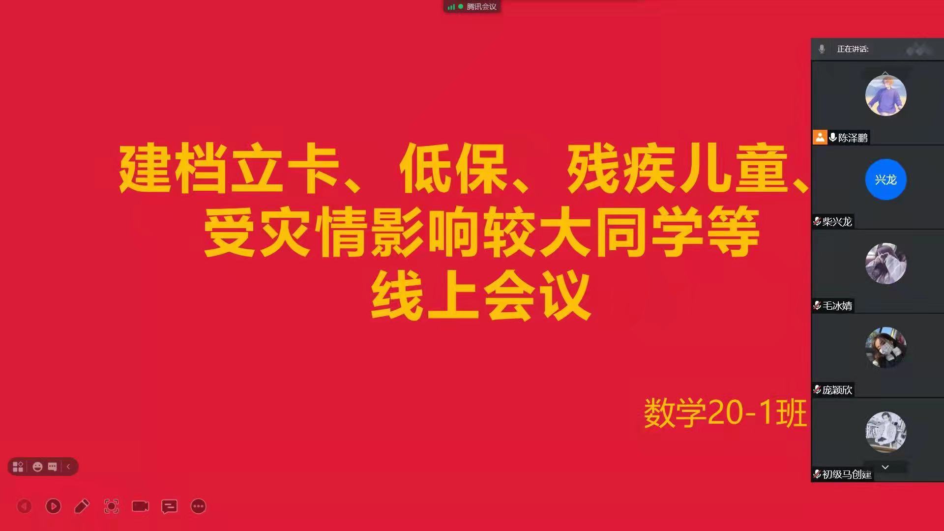 因疫情原因学生暂时未返校,我院辅导员采取线上主题班会宣讲和重点人沟通的方式对学院困难学生进行了摸底排查,向学生宣传资助政策、鼓励家庭经济困难学生认真学习。特别是对“原建档立卡学生、低保、城市困难职工家庭的子女和特困人员、残疾人子女、孤儿、残疾儿童以及受本次疫情及河南汛灾影响较大学生等特殊人群进行了深入的了解和谈话沟通,确保学院能够准确的掌握学生的真实状况。