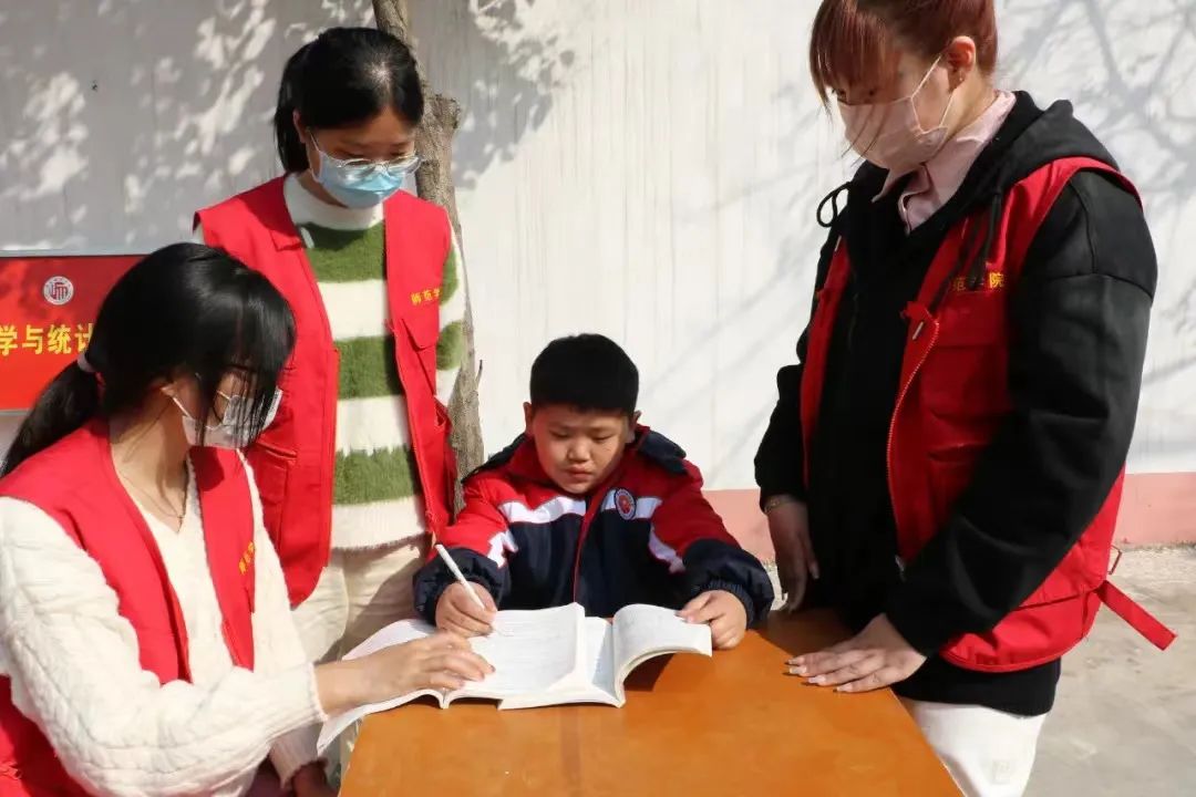 同学们主动化身“难题小帮手”,前往文化社区为社区学生解决课业难题,悉心辅导着面对难题百思莫解的学生,充分利用自身的数学专业知识帮助学生解决课业难题,并和他们交流分享了自己面对数学学科的学习方法,为小朋友们以后的学习提出了建议。