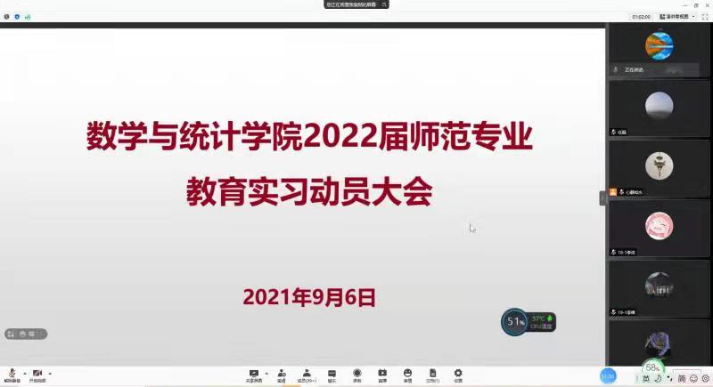 根据人才培养方案和教学计划的安排,为更好地开展师范专业教育实习工作,引导师范生进一步明确实习的内容和要求,9月6日,欧美一级婬片AA片免费召开2022届师范专业教育实习动员大会,因为受疫情影响,动员大会以腾讯会议的方式进行。院党委书记孟学超、院长张斐然、副书记陈树艳、副院长刘磊和2018级数学与应用数学专业、2019级数学教育专业全体学生以及指导老师参加云会议,会议由陈树艳主持。