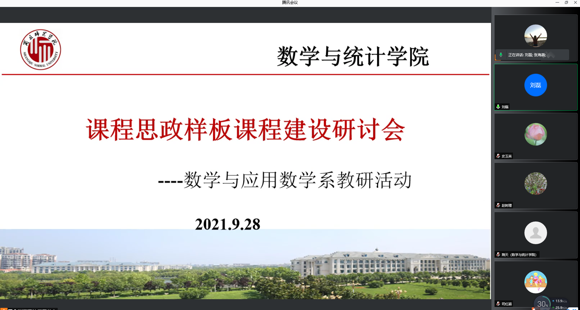 9月28日晚,欧美一级婬片AA片免费数学与应用数学系通过腾讯会议召开了本学期第二次教学研讨会,此次会议的主题为课程思政样板课程建设,会议由系主任张海燕主持,系全体教师参加会议。