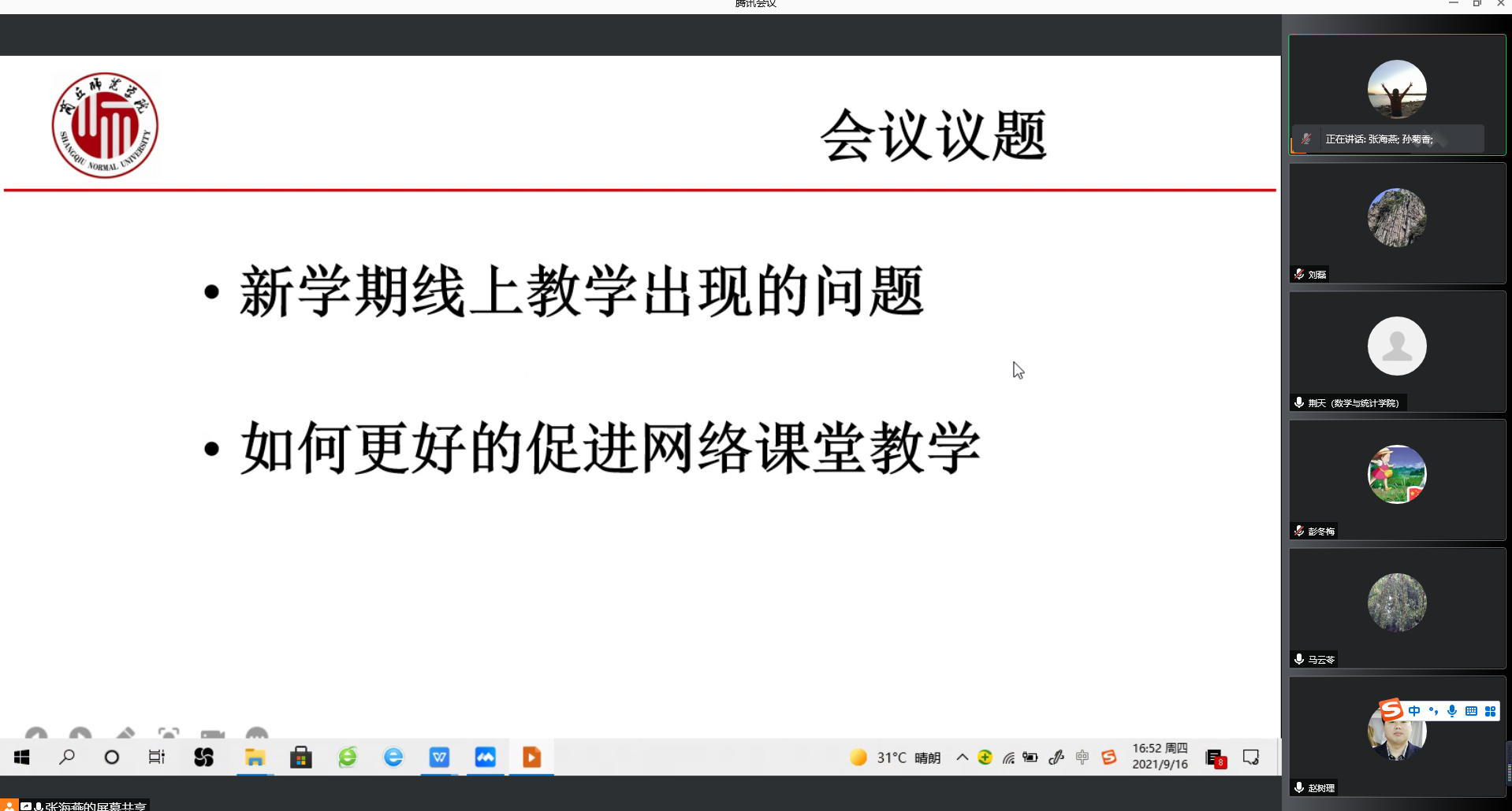 为落实网络教学的各项教学任务,更好的提高线上网络教学的效果,9月16下午,欧美一级婬片AA片免费数学与应用数学系通过腾讯会议召开了教学研讨会,会议由系主任张海燕主持,系全体教师参加。
