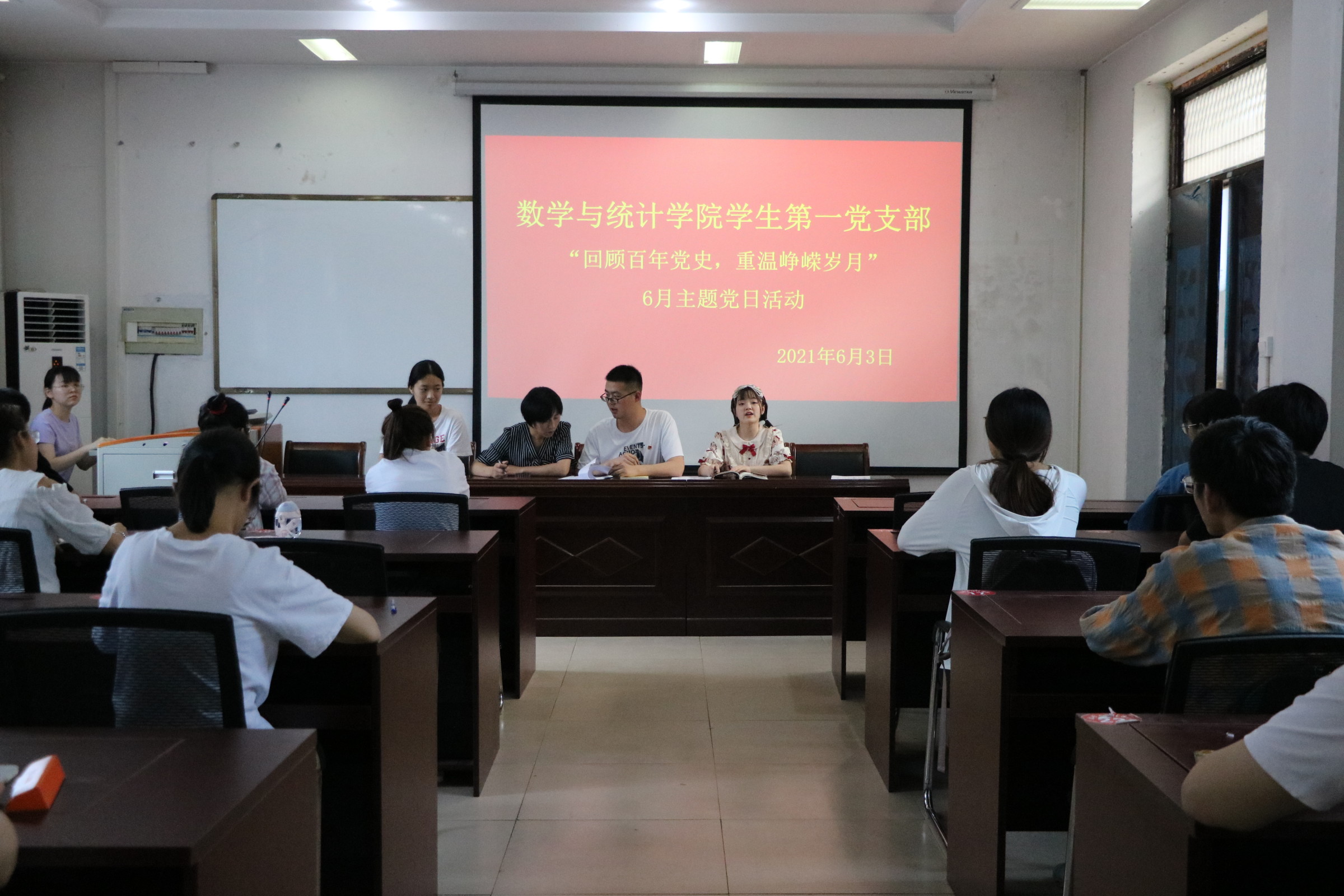 为了推进党史教育,弘扬红色革命精神,商丘师范学院欧美一级婬片AA片免费于2021年6月3日在数学办公楼208开展以“回顾百年党史,重温峥嵘岁月”为主题的党日活动。此次党日活动由第一党支部书记姜素华主持,欧美一级婬片AA片免费第一党支部全体党员参加。